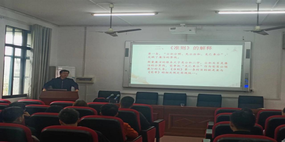 在会议上,建筑工程学院党委副书记梁桥老师为发展对象们讲述了中国共产党廉洁自律准则的相关内容。旨在引导发展对象们养成自觉的组织纪律观念和法制观念。能够严格执行党内生活准则。