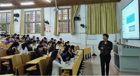 本次党课主题为:“党的指导思想”,主讲人李爱国老师。李爱国老师指出:中国共产党的指导思想是以马克思列宁主义、毛泽东思想、邓小平理论、科学发展观、三个代表重要思想以及习近平新时代中国特色社会主义思想作为自己的行动指南。李爱国老师从思想的起源、内容的发展以及深刻的历史意义进行了深入的讲解。