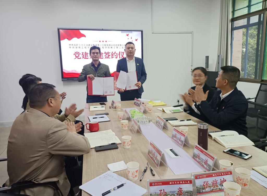 教工第二支部委员会与五矿二十三冶建设集团第一工程有限公司总部第八支部委员会联合开展了“党建校企联合、携手共建共赢”活动。五矿二十三冶一公司纪委书记、工会主席罗海等一行七人及麻豆成人