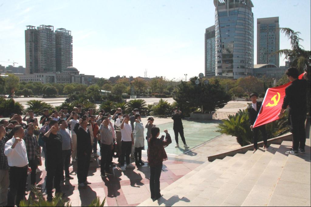 全体教工党员及学生党员代表前往东方红广场,一起重温入党誓词。大家举起右手,面对党旗,再一次庄严宣誓!铮铮誓言铿锵有力,激励着全体党员时刻以一名共产党员的标准严格要求自己。