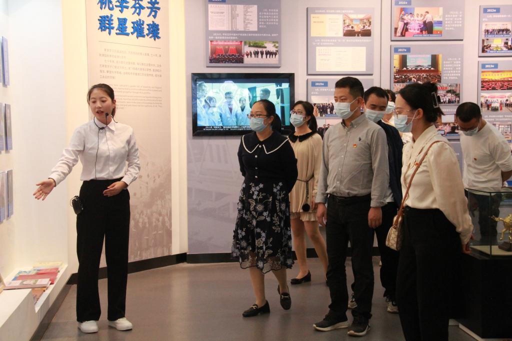 随后,全体党员一同前往新校区参观了校史馆,对学校70年的发展历史、办学成果、取得的辉煌成就及未来发展规划,有了更加全面的认识。大家驻足在一个个展台、一张张图片前,回忆学校70年发展的光辉历程,回忆自己见证学校70年发展历史的点点滴滴,充满了骄傲和自豪。