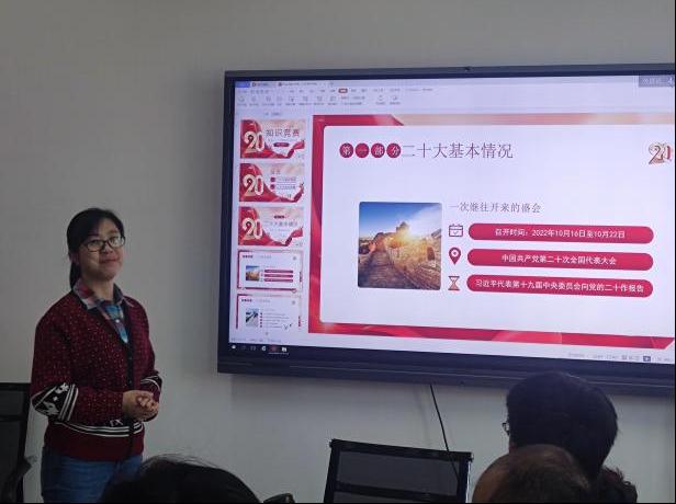 教工一支部书记王平于三教309向教工一支部党员讲授“新学期第一堂党课”,党课主题为《党的二十大精神应知应会》,王平为党员们讲授了党的二十大报告主要内容,并强调作为新时代党员,要高举中国特色社会主义伟大旗帜,全面贯彻习近平新时代中国特色社会主义思想,弘扬伟大建党精神,自信自强、守正创新,砥砺奋发、勇毅前行,为全面建设社会主义现代化国家、全面推进中华民族伟大复兴而团结奋斗。