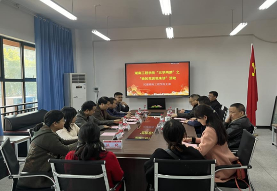 民建湖工支部主委刘向龙以“民建的历史、时代内涵与现实路径”为主题进行宣讲。他表示,民建湖工支部充分发挥智力人才优势,积极服务学校的建设和发展,以参政议政为突破口助力湘潭市基础建设,同时加强组织自身发展,实现自身价值。