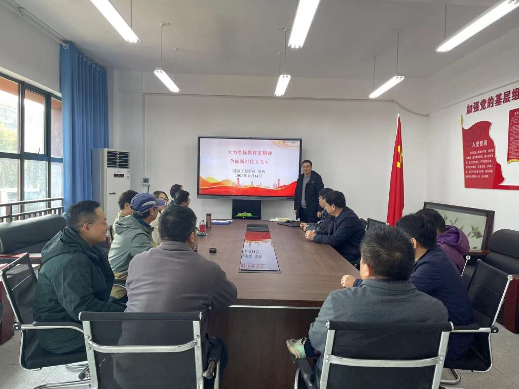 教工第二党支部在建工大楼318以“弘扬教育家精神,勇担新时代使命”为主题开展主题党日活动,党支部全体党员老师参加集体学习,支部书记彭第主持。