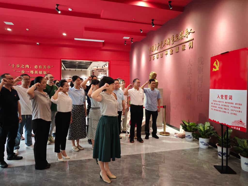 罗亦农生平业绩陈列馆中,罗亦农同志的铜像静静矗立,全体教工党员在麻豆成人