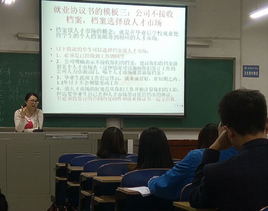 接着,老师介绍了本科生毕业后的选择,主要方向就是就业与考研。但同样的是无论是什么方向,只有付出了才会得到收获。介绍完各项事宜后,老师对应每个毕业生的编号发放了就业协议书,要求学生认真填写,并分析了填写协议书后公司收取档案和不接收档案这两种情况。最后,刘熹微老师鼓励同学们要敢于面对压力,不怕失败,积极就业,以最好的姿态去迎接崭新的明天。