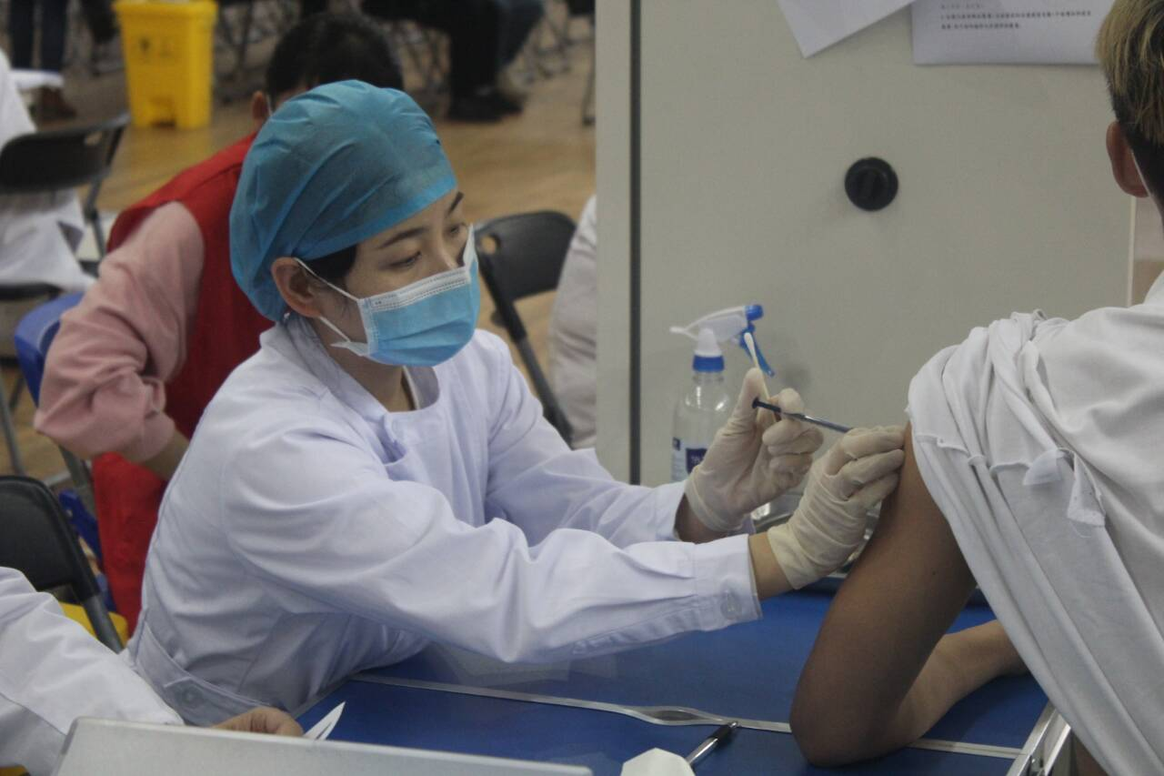 建筑工程学院的同学们在体育馆陆陆续续的进行了新型冠状病毒疫苗的注射。
