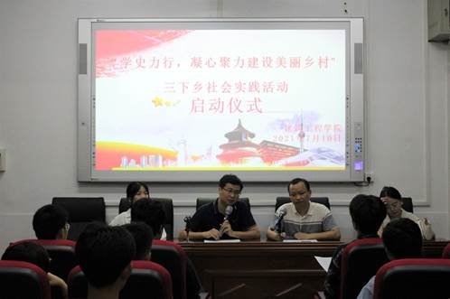 建筑工程学院在三教304举行了以“学史力行,凝心聚力建设美丽乡村”为主题的三下乡社会实践活动启动仪式。参加启动仪式的有:建筑工程学院党委副书记梁桥,学生工作办公室主任李佳,团总支书记周洳帆,辅导员朱笑雨以及实践团的成员们。