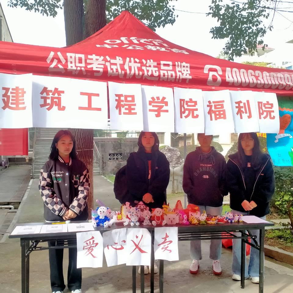 清椿社(青年志愿者中心和受资助学生代表)全体成员和湘潭市社会福利院爱心手工室联合举办了爱心义卖活动,此次义卖活动旨在充分发挥当代大学生的主体作用,提高自助和助人的意识与能力,以志愿者们微薄的力量帮助湘潭市福利院的孤残孩子更好的成长。义卖物品为湘潭市福利院孩子们精心制作的手工艺品。