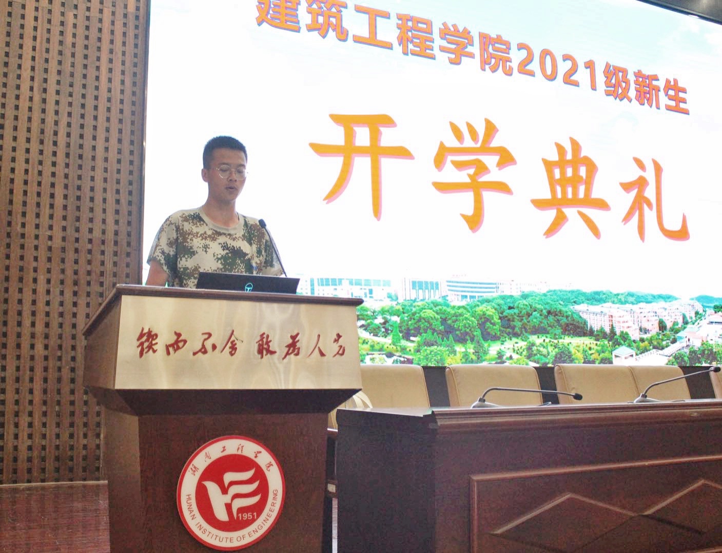 来自建筑环境与能源应用工程2101班的谢颖同学代表全体2021级新生在开学典礼上发言。他表示:“今天我为湖工骄傲,明天湖工为我自豪”,相信四年后,当他们走出湖工大门时,会成为一批高素质的人才,向母校交出一份满意的答卷!