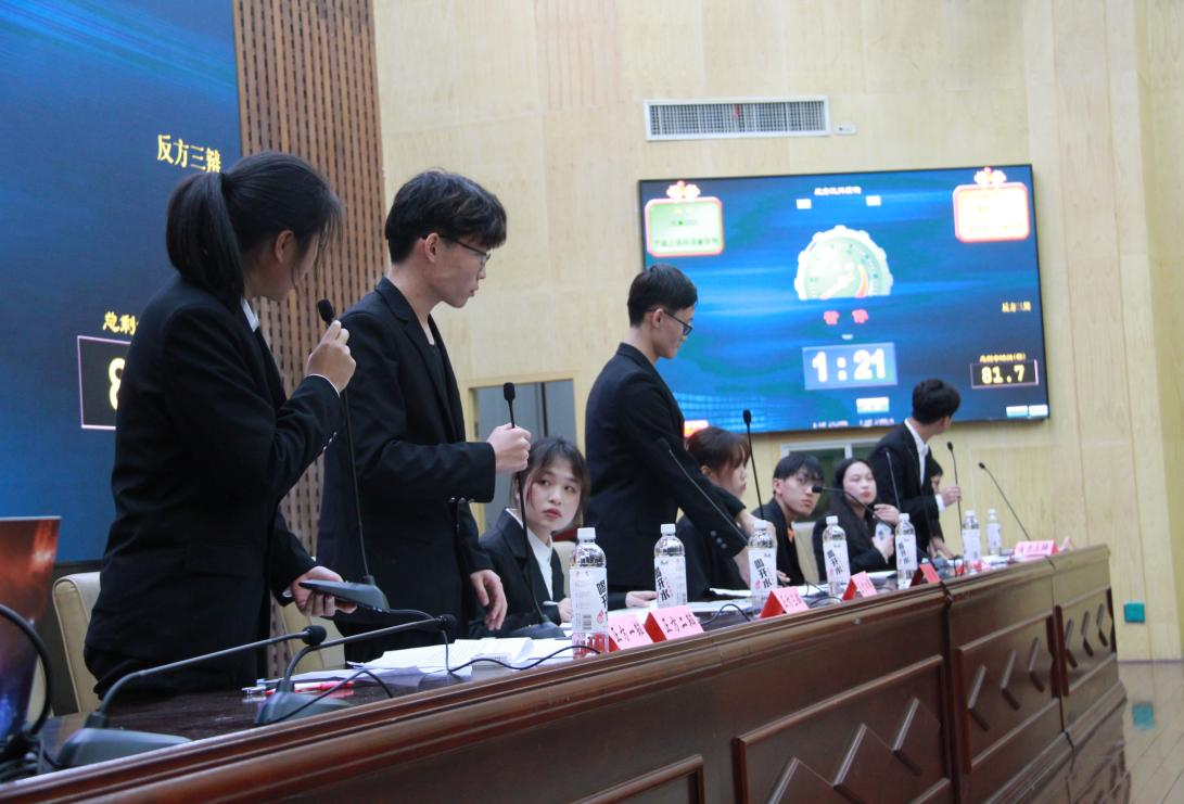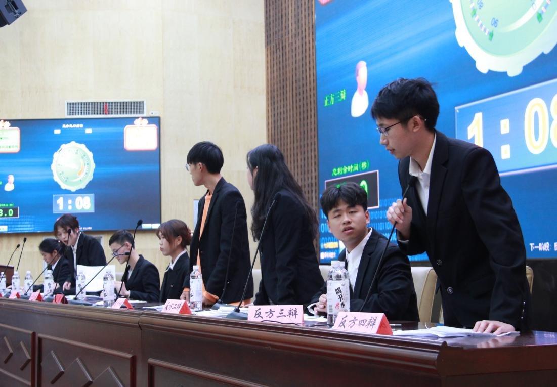 随着学生联合会主席罗易胜学长的宣布辩论赛正式开始,正方代表队工管2001班,与反方代表队建环2002班陆续进场握手后就坐。两队共同熟悉此次辩题后双方随即展开了激烈的辩论,双方据理力争,引经据典,呈现一场完美的思维碰撞。
