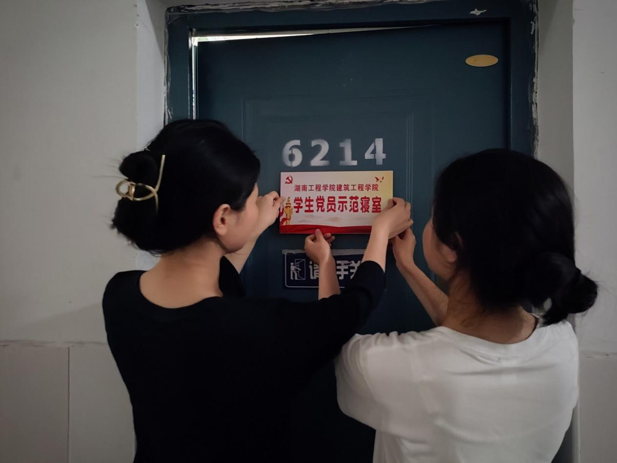 5月31日,在三个支部书记的带领下,分三个校区给党员宿舍进行挂牌,勉励学生党员要通过亮明党员身份,增强党员意识,在学习生活各方面切实发挥好一个新时代党员的先锋模范作用,时刻提醒自己以党员标准严格要求自己,学生党员要以自身的形象和实际行动,带动其他同学养成良好的行为习惯,在共建“整洁有序、文明进步”的学生宿舍中,真正发挥一名党员、一面旗帜、一间党员宿舍、一座先锋堡垒"的引领作用。