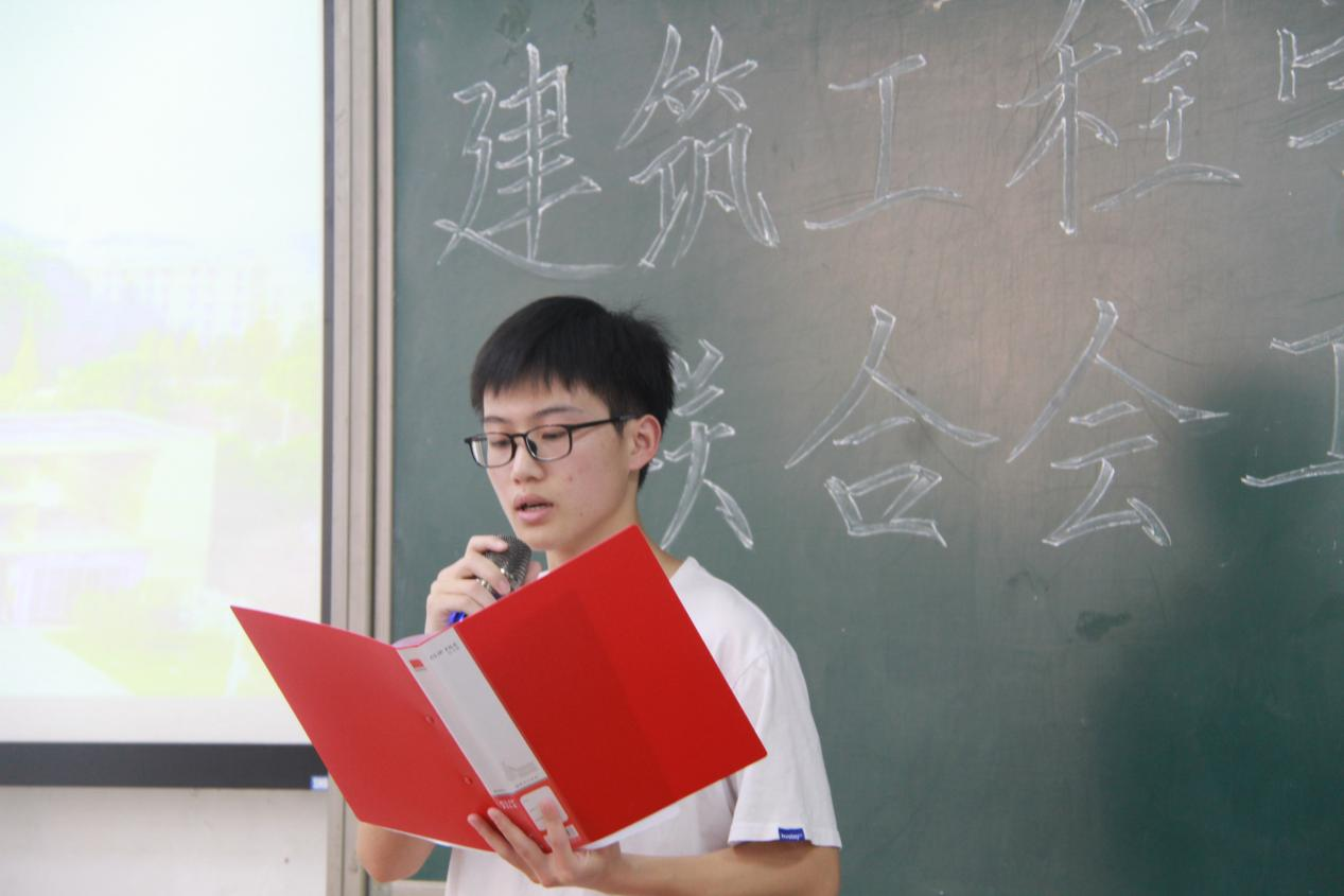 会议的最后,院学生联合会主席易罗胜同学作表态发言,他表示希望各部门的发展能够越来越好!期盼各部门稳定有序地运营,彼此之间相互协作,相互沟通,相互团结,共同进步,共创建筑工程学院美好的明天!