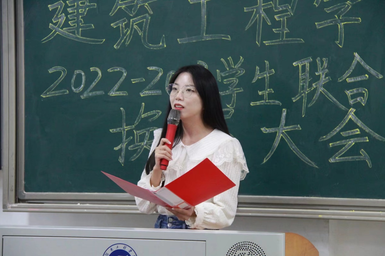 随后2022-2023届团总支副书记严名佳表达了对未来学生工作的设想,同时也对新一届学生联合会干部们提出要求:严格按照学生联合会的干部和干事标准约束自己的一言一行,认真落实完成自己的工作,积极参加学生联合会的活动,服从管理、尊敬师长、团结同学,做到学习工作两手抓、两手硬,成为一名优秀的大学生。