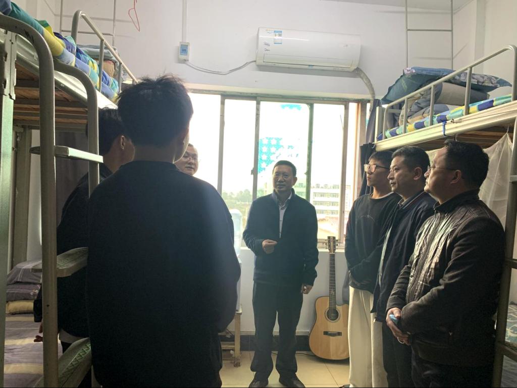 同学们也纷纷分享自己的日常学习、生活中的点滴故事。对此,罗校长含着笑意耐心倾听,并结合自己大学时的故事鼓励同学们要善于思考,勤于努力,不断充实自己,丰富自己。走访过程中,师生亲密接触,脉脉温情和阵阵笑声在寝室中流淌。