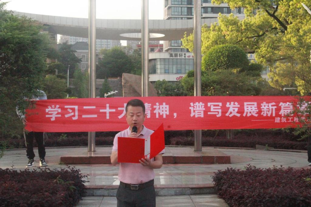 4月17日清晨,伴随着第一缕阳光洒进校园,院在新校区知行广场举行“学习二十大精神,谱写发展新篇章”主题旗仪式。院党委书记张宏、院党委副书记梁桥、学生工作办公室全体老师及2021、2022级全体学生参加。