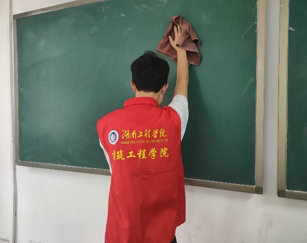 首先,召集志愿者在红楼105教室召开“红楼卫生大扫除注意事项”的会议。会议期间,详细的说明打扫卫生的注意事项及要求和各项工作分配。志愿者们按分配的任务对红楼教室的地面、桌子、黑板和窗台进行了全方面的清理。志愿者们认真打扫后,教室的每一个窗台,每一张桌子及各处卫生死角都变得干干净净。打扫完成之后,志愿者们将垃圾放到垃圾收集处,同时将清洁工具摆放整齐。
