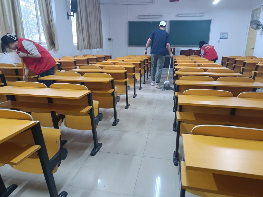招募了数名志愿者于4月8日下午对红楼教室进行卫生大扫除。