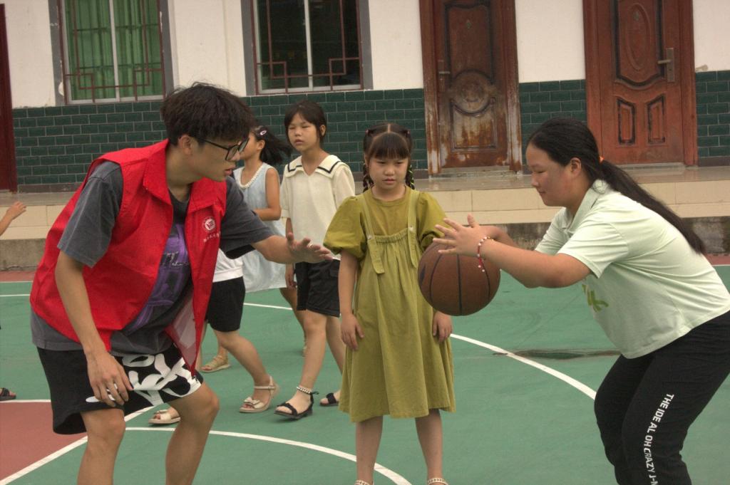 在正式授课之前,实践团成员带领小朋友们进行热身运动,“小朋友们,扭扭脖子扭扭腰,转转膝盖绕绕肩,我们一起来做运动吧!”此后,实践团成员进行了关于小朋友们打篮球的一系列基本动作和健身操,小朋友们积极参与、认真学习动作,实践团成员教给他们的基本动作和篮球知识,遇到不会的动作还会及时给与反馈。孩子们对于打篮球的积极性十分高,在课堂上实践团成员和当地的小朋友们交流十分活跃,学习氛围浓厚。