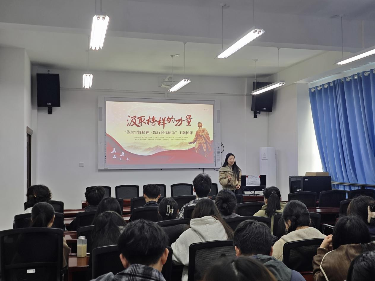 团总支书记周洳帆依次从雷锋生平介绍、雷锋精神的表现、雷锋的经典语录及学习雷锋精神的意义四个方面进行了学习。她强调学习雷锋精神,不仅要落实在认识层面,更要体现在日常生活学习中,要将雷锋精神内化为自身的道德修养,用文明的语言和行为传播正能量,用每一个细微的行动践行雷锋精神。