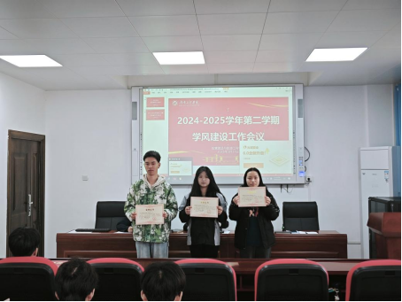 学风是学院的灵魂,是学生成长成才的重要保障。为表彰先进典型,树立学习榜样,进一步优化学风建设,营造积极向上的育人环境,学院于3月31日中午在新建工楼316召开2025年学风建设暨表彰大会。学院党委副书记罗卫、学生工作办公室主任陈玄哲、辅导员刘娟老师出席会议,各班级班长和学习委员参会。