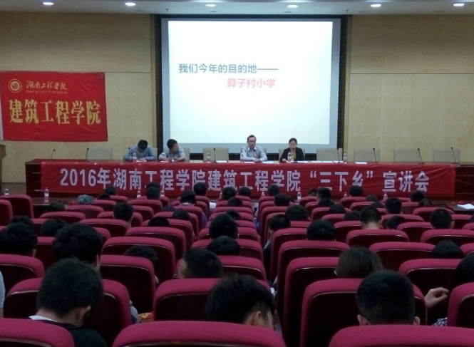 会议伊始,李佳老师作为2014年暑假“三下乡”活动的带队老师,对暑期“三下乡”作有关成果及知识的普及;接着观看建筑工程学院 2014-2015年“三下乡”视频,近距离感受学院“三下乡”团队的风貌;视频播放结束后,2015年暑期“三下乡”活动的带队老师唐喜梅老师开始发言,唐老师分享了自己带队时的经历,把“三下乡”的生活用最简单的语言给同学们勾勒成鲜活的画面,同时她高度赞扬了往届“三下乡”成员的品质,并希望同学们参加这个活动是出于真心,出于热爱;接着“三下乡”社会实践活动优秀学生代表上台发言,先是往年连续两届“三下乡”团队成员王磊同学讲述了自己的亲身体验,然后2015年暑期“三下乡”支教组组长李晓同学发言;接下来便是观众提问环节,大家将心中的疑惑一一说出来,老师与往届代表们耐心的向大家解释,大家均表示受益匪浅;最后,建筑工程学院团总支副书记夏哲凡同学阐述了他对2016年建筑工程学院暑期“三下乡”社会实践活动的计划计划方案。至此,建筑工程学院2016年暑期“三下乡”宣讲会圆满结束。