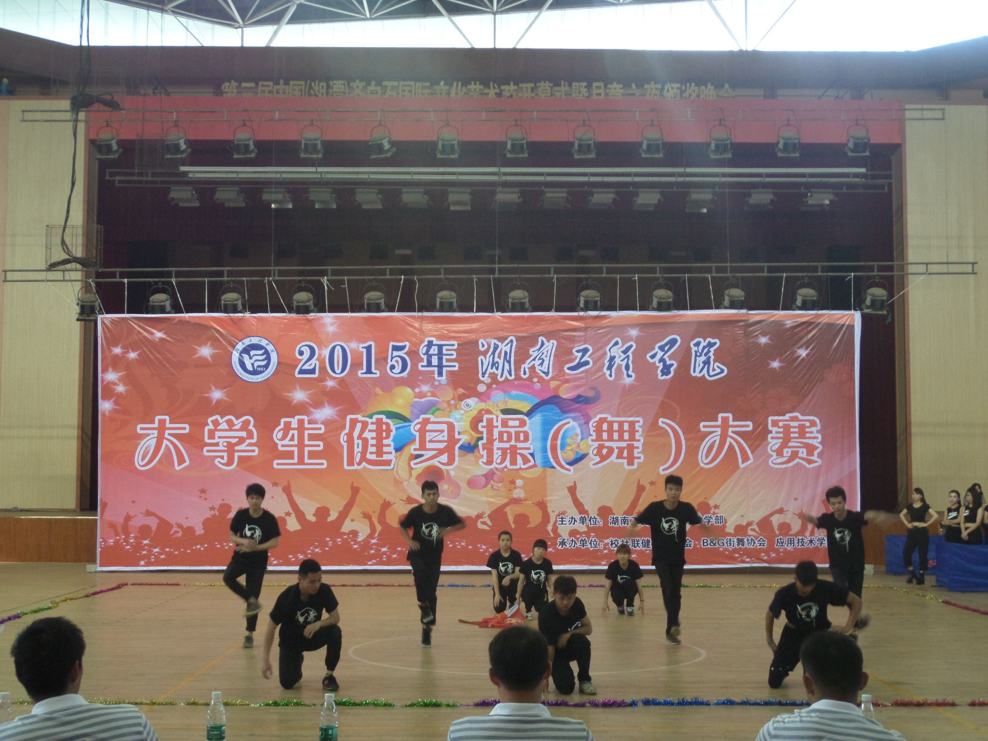 健身操比赛在体育馆举行。体育教学部部长张建新及肖潇、周伟峰、李文雄、杨洁等老师担任本次比赛的评委。学校13个学院的代表队参加了比赛。建筑工程学院在此次比赛中再获佳绩,荣获啦啦操、健美操、有氧健身操第三名,街舞第二名,荣获团体优秀组织奖。