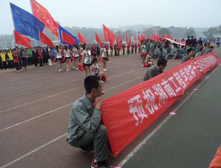 在体育馆举行2013年秋季运动会。本次运动会由学校举办,各校区运动员积极参与,展示了新一代大学生的运动精神面貌。本次运动会以“友谊第一,比赛第二”为主题,充分展示了我湖工学子的拼搏精神。