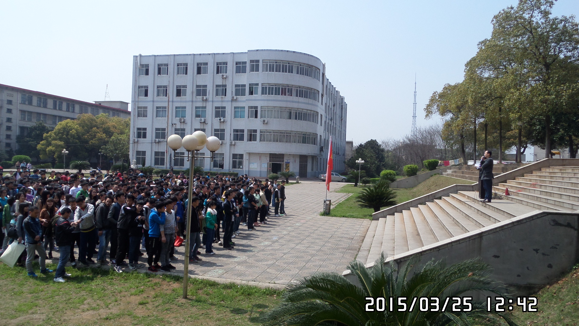 2015年3月25日中午12点30分,建筑工程学院在北院学海花园举行了开学来的第一次午训。