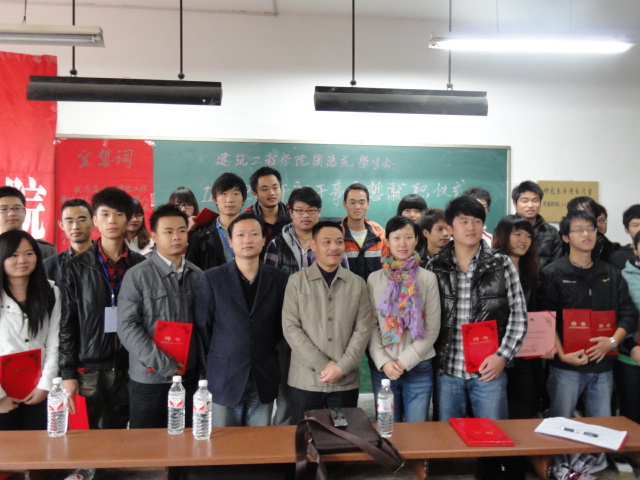 2011年10月28日中午,建筑工程学院在北院四教209教室召开了团总支学生会新老干部交接大会。建筑工程学院党总支副书记单山鸣、学办老师李佳、刘娟老师出席会议,以院学生会主席罗琨、院团总支副书记梁凤鸣为代表的2010—2011届学生干部,2011—2012届团总支、学生会干部及干事参加了本次会议。