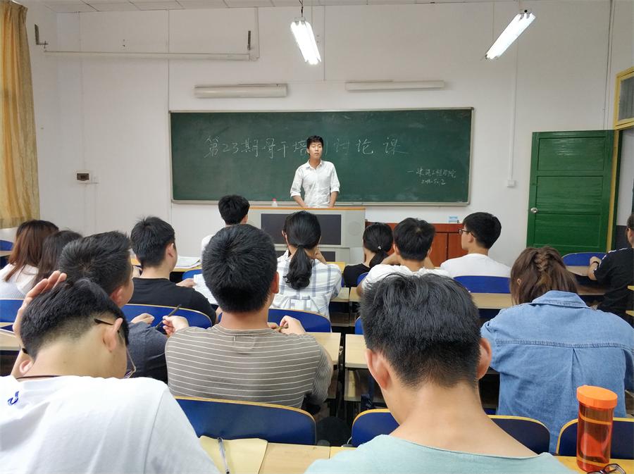 5月2日中午,建筑工程学院第23期发展对象培训讨论课在主校区(北)红楼209室举办。此次讨论课有28名学员参与讨论,学院党务专干唐喜梅组织并发言,党务助理雷永强主持。
