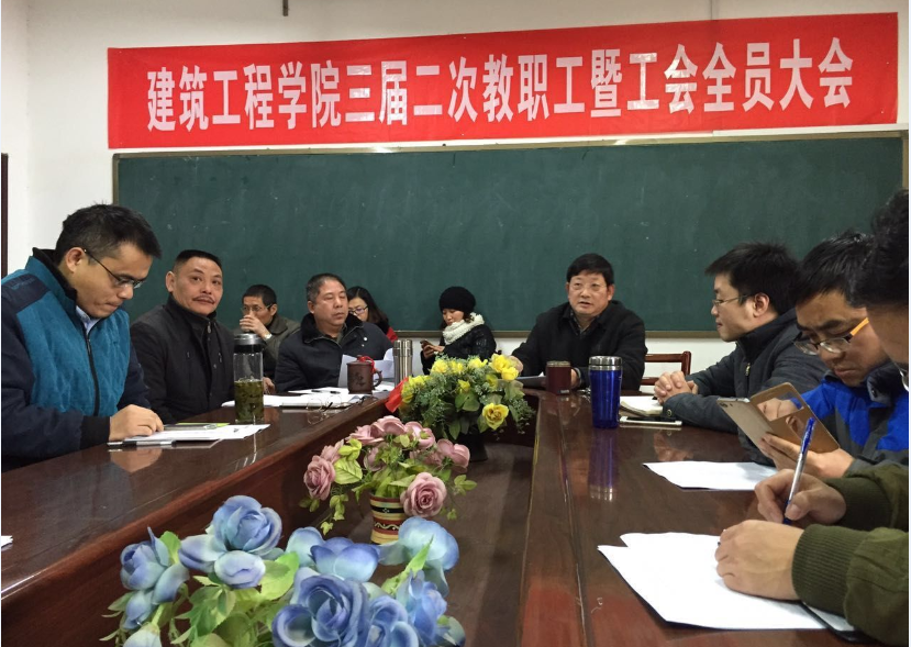 2016年1月8日下午,建筑工程学院第三届教职工代表大会第二次全体会议在建工楼三楼会议室召开。全院在位在岗教师参加了此次教职工代表大会。会议由建筑工程学院党总支副书记单山鸣主持。