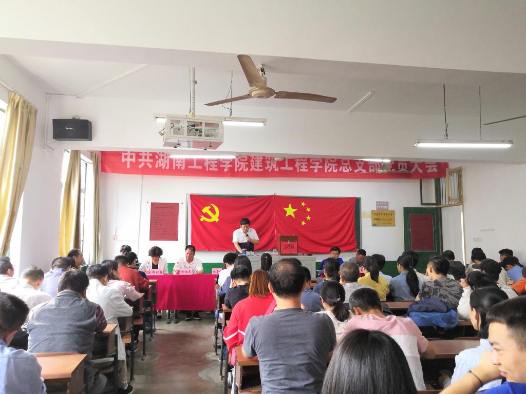 建筑工程学院总支部党员大会在四教209召开。原院党总支书记谢治民、原院党总支副书记单山鸣、现党委书记陈金陵、建筑工程学院副院长彭利英、副院长陈晓,副书记梁桥、以及全体老师党员和学生党员参与此会。