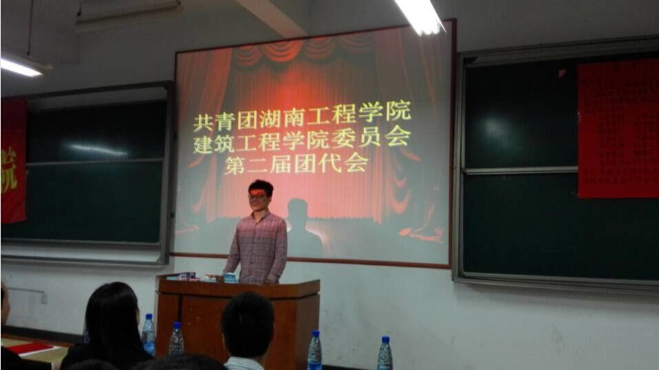建筑工程学院第二届团代会在主校区D座202教室召开,建筑工程学院学生办公室主任李佳老师为大会开幕式致词,建筑工程学院团总支书记唐喜梅老师出席会议并讲话,建筑工程学院团总支副书记夏哲凡作为团员代表发言。