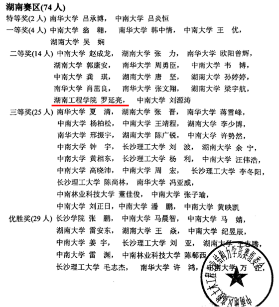 土木工程1402班罗延亮同学荣获二等奖,获奖成绩在同类院校中名列前茅,也是历年获奖成绩最好的。