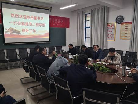4月14日上午,校党委书记陈岳堂带队到建筑工程学院就政治建设、五化支部建设、学科建设,科研工作、干部队伍建设、师资队伍建设等开展调研,党政办、组织部、人事处、科技处、研究生处等部门负责人陪同调研,学院班子成员、教研室主任及两办主任参加调研座谈。
