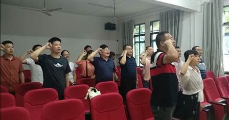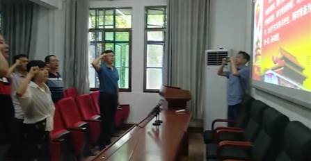 第二项活动由支部宣传委员张婵韬同志领誓,全体党员面向党旗庄严宣誓,重温入党誓词。