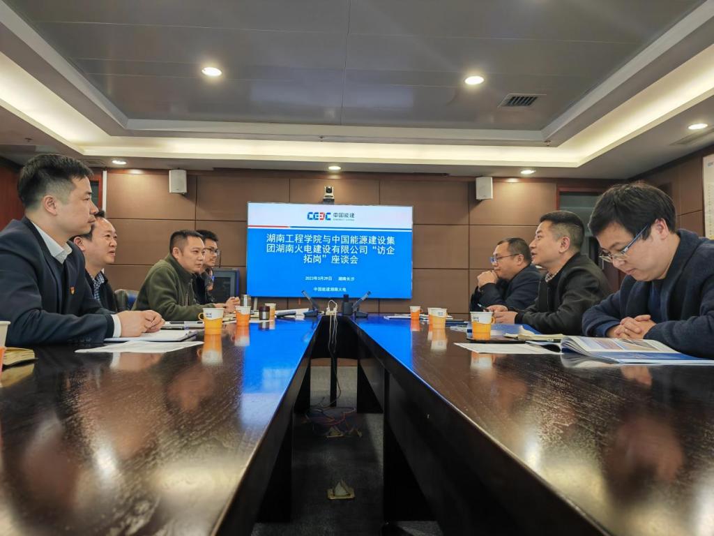 院党委书记张宏、院长李小华一行走访中国能源建设集团湖南火电建设有限公司。中国能源建设集团湖南火电建设有限公司副总经理兼总工程师陈集农、人力资源部部长王荣贵等参加座谈。