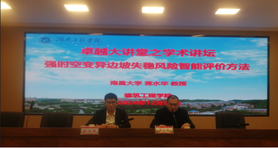 开展“强时空变异边坡失稳风险智能评价方法”卓越大讲堂主题讲学。讲座在新建工楼115报告厅举行,建筑工程学院相关负责人及师生踊跃参与,讲座由建筑工程学院院长李小华主持。
