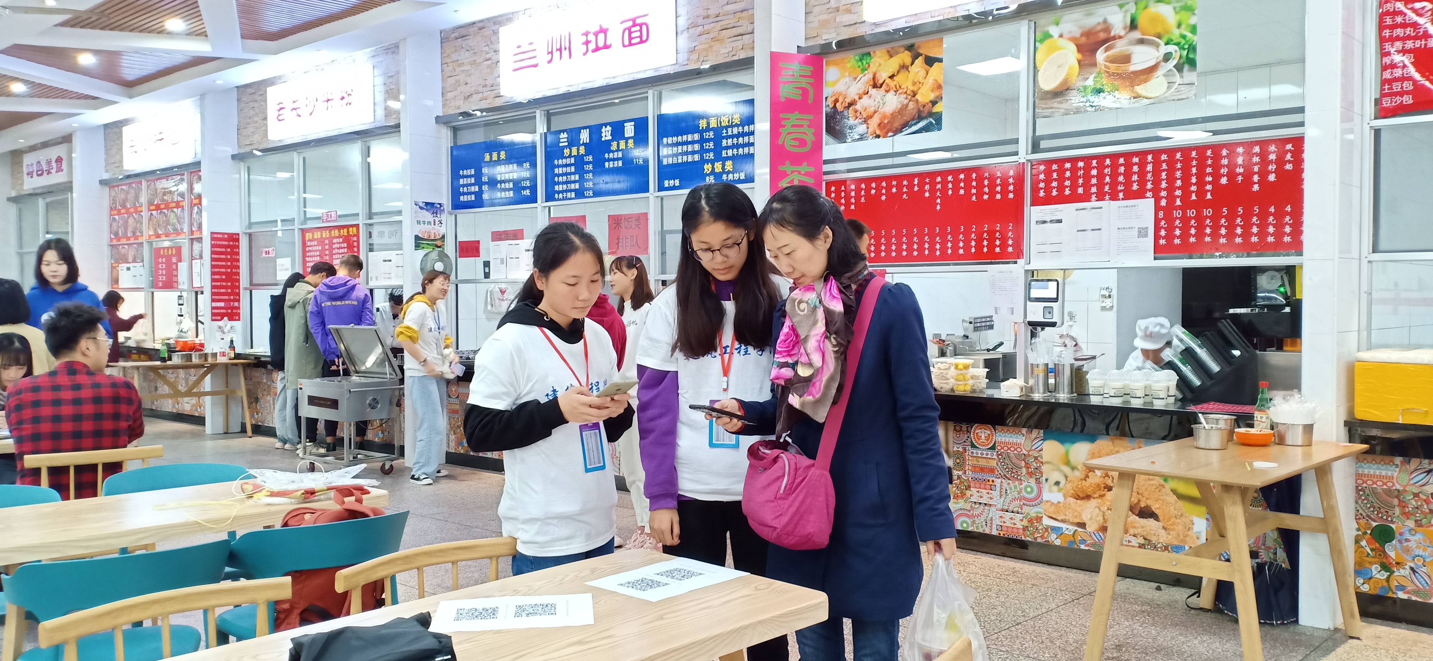 11月13日中午11:20-12:20,建筑工程学院响应主题教育号召,立足自身岗位,组织师生党员、学生会干部等120余位志愿者分成两组分别在滨江食堂、学海一食堂开展校园“一卡通”推广志愿服务活动,志愿活动得到了网络中心的大力支持与现场协助,活动期间共帮助了400余名同学使用新支付方式。