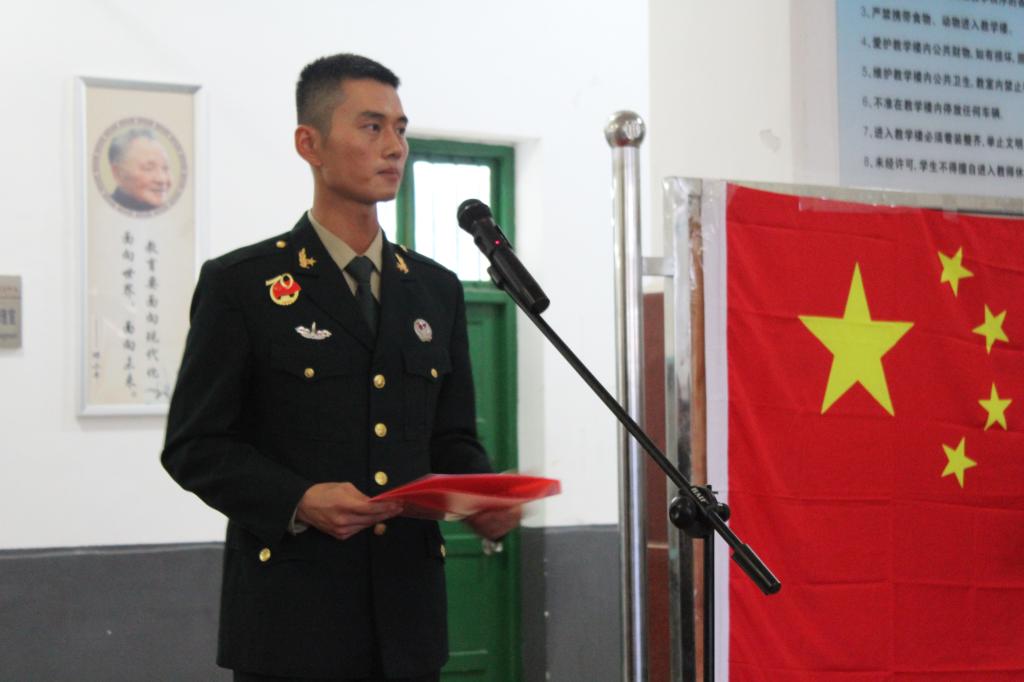 党总支书记陈金陵、宣传部常务副部长张小刚、学生工作办公室主任李佳老师、师生代表、邢承勇同学及其三位战友参加了本次仪式,仪式由麻豆成人
