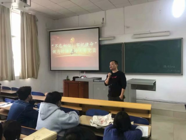 建筑工程学院学生第一支部委员会书记李佳在红楼105给56名党员上了“不忘初心、牢记使命,做与时俱进的优秀党员”的党课。